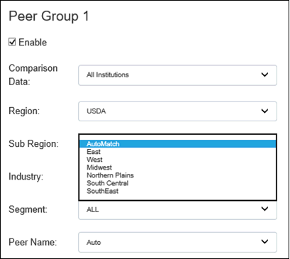 2. For each peer group that you want to include in the comparison, select the Enable check box.
